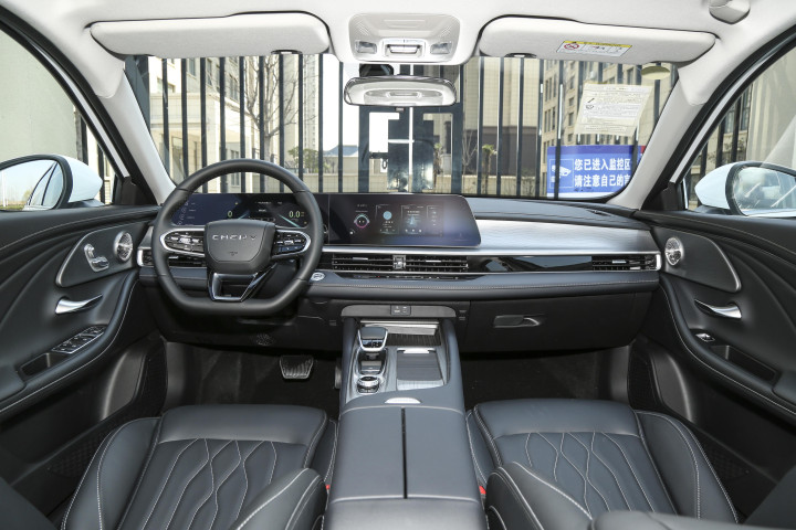 来到前排,座舱虽然采用纯黑色主色调,但是质感很出色,真皮和银灰色拉丝金属面饭泛着“高端”的光泽,加上一体式的多媒体屏幕和液晶仪表盘、平底式多功能方向盘、高大上的电子档杆,设计感还是比较不错。而在配置上,艾瑞泽8全系标配6气囊,顶配还有10气囊,除了最低配车型,其余车型还配有L2级驾驶辅助系统。